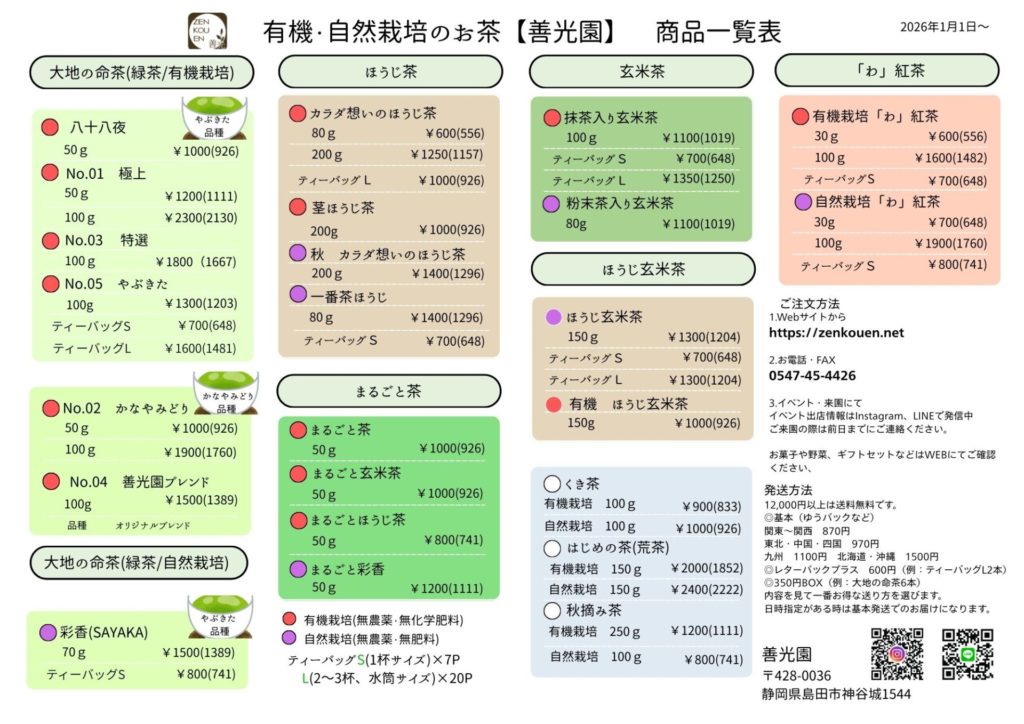 誠に心苦しいお知らせではありますが、2026年1月1日ご注文分より下記の通り価格を改定させていただく運びとなりました。